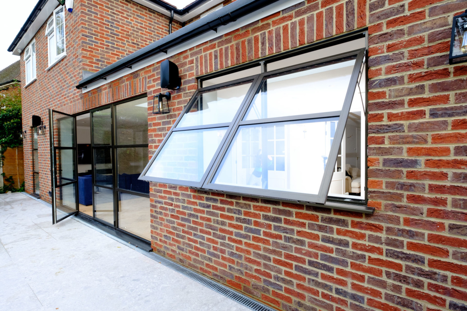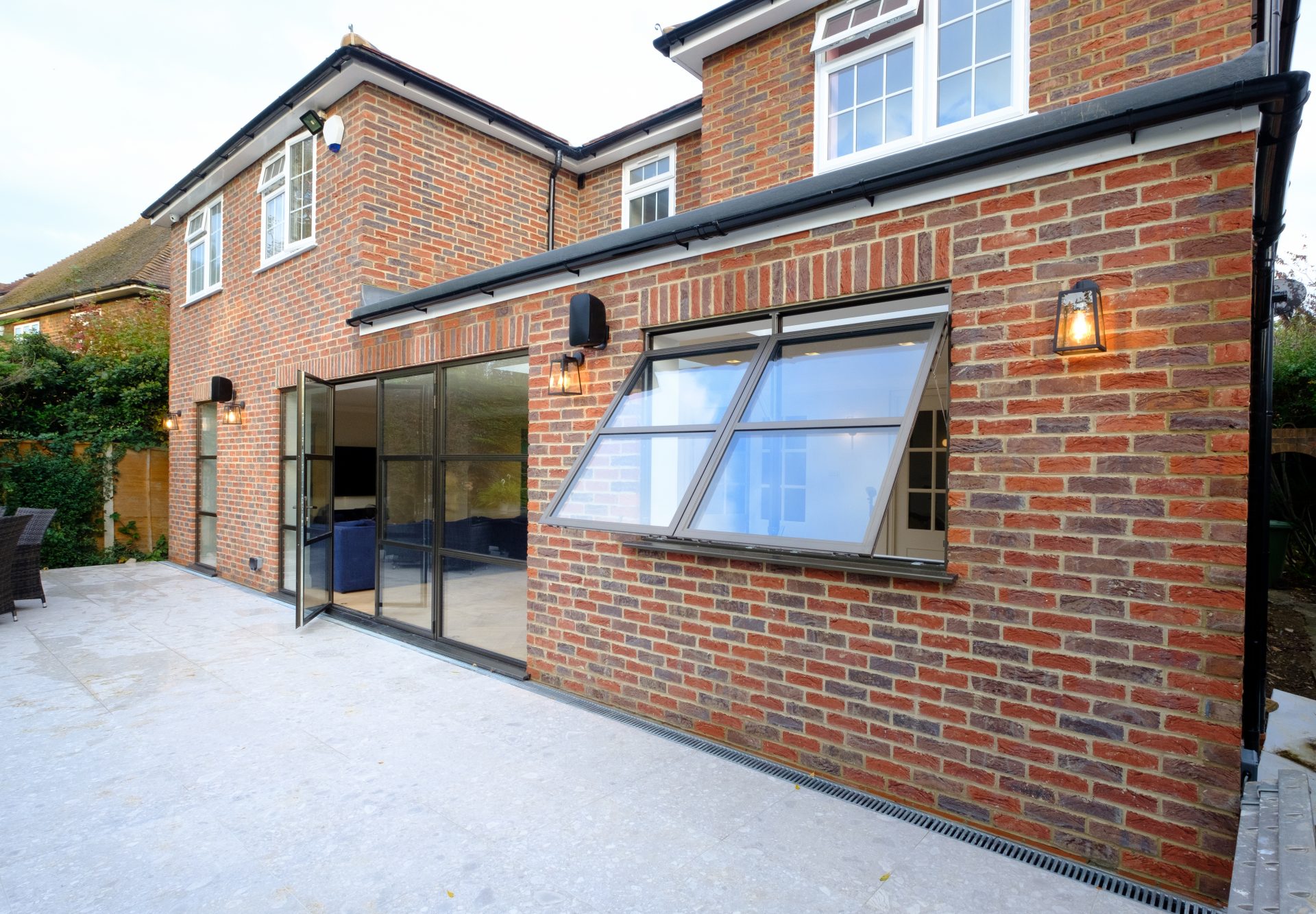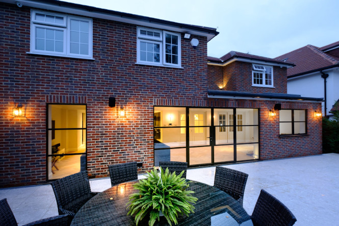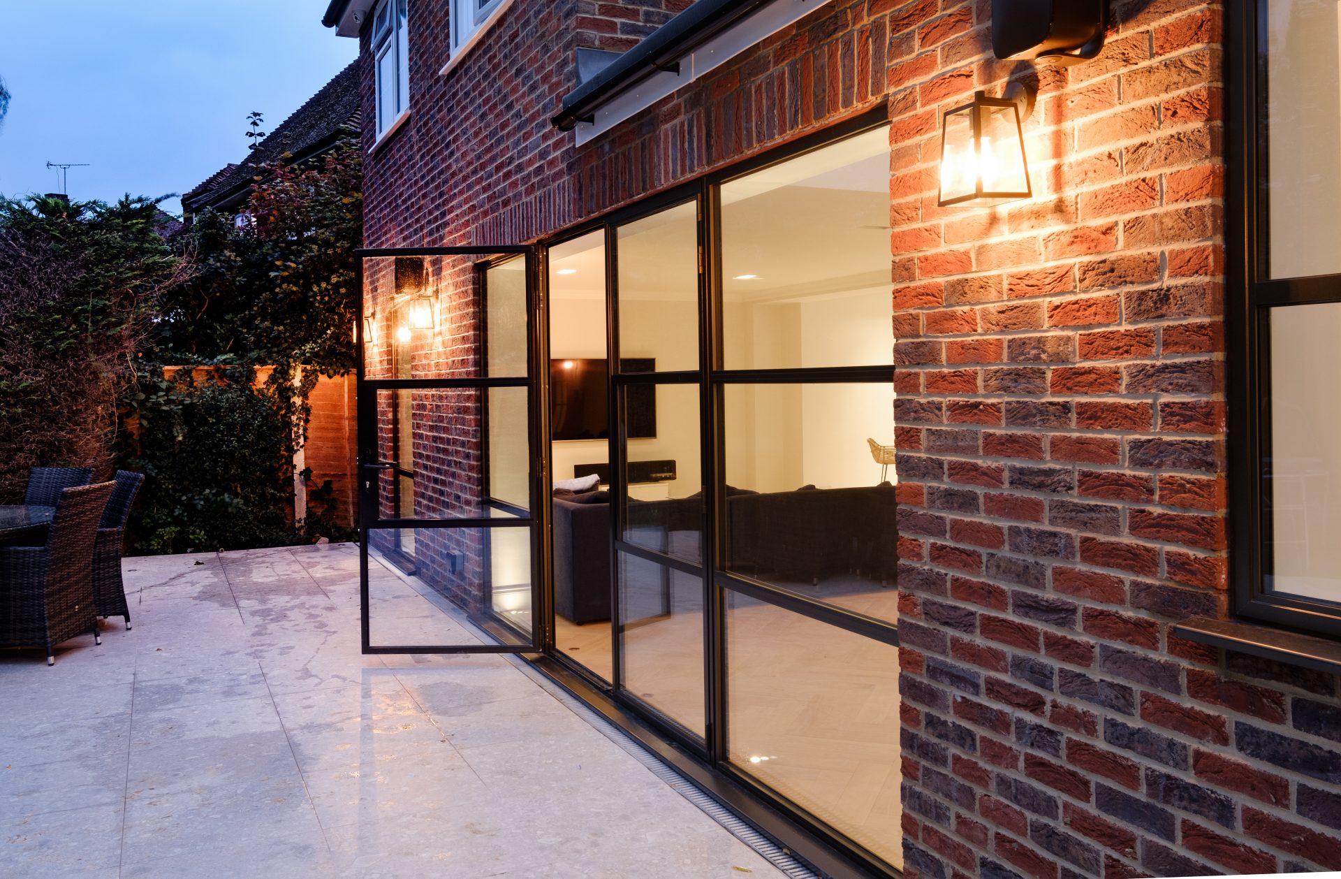 Steel look windows and doors were used to create an industrial style to this modern renovation in Harrow.